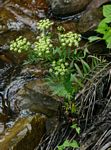 Erect, hairless perennial herb, up to 150 cm tall, growing from a creeping rhizome. Stems hollow, grooved, sometimes tinged red. Leaves pinnate, up to 30 cm long; leaflets oblong-lanceolate, up to 10 × 2 cm; margin with close-set regular teeth curving over each other as to give an almost scalloped appearance. Flowers in compound umbels with 7-24 rays, greenish-white to yellowish; bracts numerous, linear, up to 2 cm long; bracteoles similar to bracts. Fruit ovate-oblong, c. 2 × 1 mm, reddish-brown when ripe.