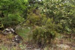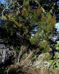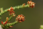 Shrub or small tree. Leaves in whorls of 4, appressed to spreading, linear to ovate, 1-2.5 mm long, hairless or pubescent and glandular teeth on the margin. Flowers in terminal 4-16-flowered clusters. Style 0.5 mm long; stamens usually 6, more or less equaling the corolla, anthers remaining fused. The flowers produce dust-like clouds of pollen when shaken. |