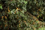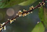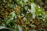 Shrub or small to medium-sized tree. Bark grey-brown to blackish, rough in older specimens; stem often fluted; milky latex present. Leaves oblanceolate to narrowly obovate, 9-25 cm long, leathery, glossy green and hairless above, pale with silvery hairs and distinct, parallel lateral veins below, midrib grooved. Young leaves and twigs covered in short brown hairs. Flowers in few to many-flowered clusters on dwarf spur branchlets along the branches, greenish to creamy-white, sweetly scented. Fruit thinly fleshy, ellipsoid, c. 2.5 × 1.5 cm, yellow to orange when ripe, tipped by the style and cupped in the calyx lobes, edible. |