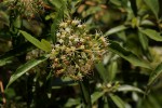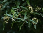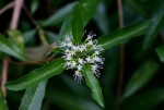Multi-stemmed shrub or small tree. Leaves opposite or in whorls of 3, narrowly oblong, 4-9 cm, light green or greyish-green, finely hairy when young, glabrous when older; base tapering, running down the petiole; margin entire or bluntly serrate. Flowers small, white, in axillary and terminal branched heads. Fruit a small capsule, c. 3 mm, only just protruding from the persistent calyx. |