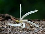 Liane climbing up to 15 m or more. Milky sap present. Bark pale greenish-brown; branches dark brown, hairless or sparsely hairy when young. Leaves opposite, obovate-elliptic, fairly thinly textured, hairless or with a line of hairs on the sunken midrib above, lateral veins looping round to form a distinct submarginal vein; apex rounded; often with a short acuminate tip. Flowers in lax, elongated terminal panicles, sweetly scented. Corolla lobes up to 15 mm long, curved-linear, white, long-ciliate along the inner margin; tube 11-19 mm long, narrowly cylindric, slightly dilated in the upper half, pale to dark pink. Fruit subspherical, fleshy, up to 3 × 4.5 cm, yellow to red when ripe, edible. |