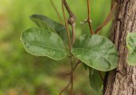 Large liane up to 15 m high with main trunk up to 30 cm in diameter, fleshy; bark smooth, grey, shiny. Leaves oblong to broadly elliptic, 3-15 cm long, hairy beneath, sometimes also above; petiole 8-25 mm long. Flowers in 10-30-flowered axillary umbels on a peduncle 5-15 mm long and pedicels 5-13 mm long. Corolla 10-15 mm in diameter, pubescent outside, yellowish-green to brown inside; lobes broadly linear, 5-10 mm long, spreading with margins slightly reflexed. |