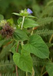Twining annual herb. Stems several, up to 85 cm long covered in long, appressed silky hairs. Leaves ovate-oblong, cordate at the base, more or less pilose with brown or whitish hairs. Flowers in dense, hairy capitate clusters, supported by bract-like leaves. Corolla funnel-shaped, deep blue with a white centre, c. 1 cm, slightly 5-lobed. Capsule spherical, glabrous, straw-coloured. |