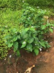 Erect annual or short-lived perennial herb, up to 150 cm. Leaves alternate to sub-opposite triangular-ovate, up to 17 cm long, upper surface wrinkled and with scattered bristles, somewhat more hairy below; base decurrent down the long petiole. Flowers in curled elongating inflorescences, eventually up to 36 cm long, white, rarely mauve or blue. Fruits deeply bilobed with diverging beaked lobes, c. 4 × 4 × 2.5 mm, almost hairless. |
