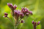 Erect annual herb, 0.6-2 m; stems scabrid to hispid or hairy. Leaves ovate, obovate or ovate-lanceolate below, narrower above, sessile, often ± amplexicaul, serrate. Inflorescence of numerous spikes, usually arranged in dense groups of 3. Bracts purplish, lanceolate, 2.75-4 mm. Calyx purplish. Corolla purple or magenta; tube 5.5-7 mm, exserted for c.1/2 of its length. |