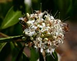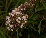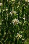 Shrub or small tree. Stems and branches covered in white lenticels. Leaves mostly in whorls of 3 to 4, ovate to elliptic, variously hairy, particularly along the midrib. Leaves often folded up on either side of the midrib, unpleasantly scented when crushed. Flowers in dense, rounded terminal heads, white to pale pink with pink or mauve stamens and style exerted. Fruits rounded or slightly lobed, c. 10 mm in diameter, yellowish when ripe. |