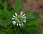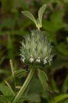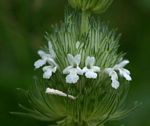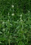 Erect annual herb, up to c. 1 m tall, unbranched or branched from near the base. Stems densely covered in appressed hairs. Leaves opposite, sessile or shortly petiolate, ovate to oblong-lanceolate, 3-12 cm long, usually broader lower on the stems, densely hairy on both surfaces; margin sparsely crenate-dentate, mainly in the upper half. Flowers in 1-3 many-flowered, spherical clusters (verticils). Bracteoles numerous, filiform, up to 1 cm long, densely hairy, spine-tipped. Calyx, whitish with green ribs, usually 5-toothed. Corolla white to very pale mauve. |