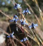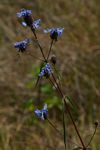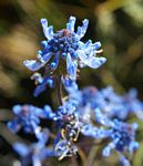Erect aromatic perennial herb, up to c. 1.5 m. Leaves petiolate; lamina 6-12 × 0.3-1.5 cm, linear to narrowly lanceolate, more or less glabrous, densely gland-dotted; apex acute; margin irregularly serrate. Inflorescence a dense spike, 2-4 cm. Calyx sparingly pubescent, green with a purplish tinge; teeth 3-4 mm, spiny. Corolla c. 15 mm, gentian-blue, sometimes tinged greenish. |
