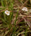 Erect perennial herb up to 50 cm, rarely taller; hairless. Stem branching from the base or simple, narrowly winged. Leaves opposite, without a petiole. Flowers solitary, axillary on long pedicels, white with yellow spots in the throat. |