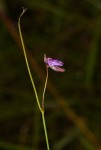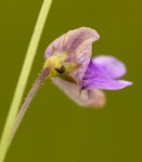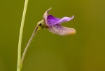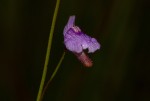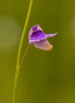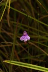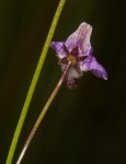 Erect terrestrial herb 10-30 cm high. Leaves numerous in a basal rosette, spathulate, 2-4 cm long with a distinct petiole. Traps numerous, colourless, clustered below the leaves. Inflorescence simple or sparsely branched, 3-10 flowered. Calyx with 5 subequal lobes 2-4 mm long. Corolla 2-lipped, 10-15 mm long, violet, blue mauve or pink with a paler often greenish or yellowish spur; rarely all yellow. Upper lip ovate, about twice as long as the calyx lobes; lower lip larger broader than long, 3-lobed; spur more or less cylindrical, obtuse, 1.5-2 times as long as the lower lip, more or less bristly hairy. Fruit a globose to broadly ovoid capsule, 3-4 long, more or less bristly hairy. |