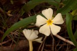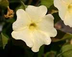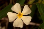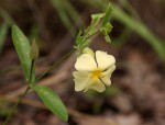 Perennial herb growing from a woody rootstock. Stems several trailing to suberect, up to 1-2 m long. Leaves opposite, narrowly oblong-elliptic, up to 9 cm long, 3 times or more longer than wide, sometimes with small subhastate lobes at the base; margin entire or shallowly crenate; petiole 2-8 mm long, more or less greyish pubescent, not winged. Flowers axillary, solitary. Bracteoles ovate, up to 1.9 cm long, leathery, green with brownish rib-like veins. Corolla pale lemon-yellow, sometimes slightly darker yellow in the throat; lobes up to 1.5 × 1.7 cm, often broadly emarginate. Capsule 7-9 mm in diameter with a narrowly triangular beak, 10-12 mm long, densely and finely velvety. |