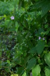 Erect or decument perennial herb, up to c. 50 cm tall, sometimes scrambling and taller. Stems several, growing from a woody rootstock, variously pubescent or with more or less spreading hairs. Leaves opposite, elliptic, lanceolate to more or less broadly ovate, 4-10 cm long, usually pointed at the apex, almost hairless or pubescent, most densely so along the veins; petiole up to 2.5 cm long. Flowers axillary, solitary or 2-3 together; bracts lanceolate to broadly ovate, 7-23 mm long. Calyx 9-25 mm long, divided almost to the base; lobes filiform, ciliate-hairy. Corolla white, mauve or purple, short-lived; tube 14-28 mm long with cylindric part much shorter than the throat; lobes more or less broadly elliptic, 6-16 mm long and up to 15 mm wide; margin entire to crenate-dentate. Capsule narrowly oblanceolate or clavate, 15-24 mm long, finely velvety. |
