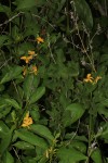 Shrub-like perennial herb, up to 1.5 m tall, more or less woody at the base. Stems with slender axillary spines. Leaves opposite, ovate-lanceolate, up to 5 × 2 cm, tapering to a sharp point. Flowers axillary and terminal, yellow to orange; bracts narrowly ovate, tapering to a sharp spine-like tip. |