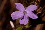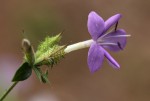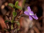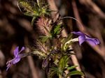 Small herbaceous shrub, up to 1.3 m tall, sometimes scrambling. Stems covered in short and coarse yellowish hairs. Leaves opposite, ovate or elliptic, 4-10 cm long, densely covered in pale grey stellate hairs when young, becoming more or less hairless when older. Flowers in 2-7-flowered axillary clusters. Bracteoles linear-lanceolate, in unequal pairs, largest 10-23 mm long; margin with widely spaced teeth and a spiny apex. Calyx lobes broadly ovate, largest 13-19 mm long, translucent with conspicuous reddish-brown veining; margin with coarse spiny teeth. Corolla 27-37 mm long, blue-mauve with a white tube, hairy on the outside. Capsule 11-13.5 mm long, mostly hairless.