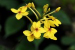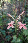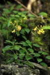 Scrambling or decumbent shrubby herb to 1 (-1.5) m tall with ascending flowering branches; plant drying green. Leaves opposite, ovate to elliptic, largest 5.5 - 17.5 cm long, abruptly narrowed below into a long decurrent base, hairless or sparsely hairy. Flowers solitary or in 3(-5)-flowered cymules forming unbranched cymes to 40 cm long; lower nodes in inflorescence to 1-4 cm long. Inflorescence axis finely hairy and with stalked capitate glands. Calyx 5-9 mm long, with hairs and stalked capitate glands. Corolla salmon-pink to orange-red with numerous darker spots towards the centre and on the outside of the lobes with long curly hairs but no stalked, capitate glands; tube linear, 1.8-2.8 cm long; lobes elliptic, 8-14 mm long. Capsule 2-3 cm long. Inner surface of the seed with irregular ridges. |