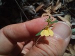 Slender erect annual herb, up to 40 cm. Leaves widely spread along the stem, narrowly lanceolate. Inflorescence dense, terminal. Flowers between long narrowly obovate bracts covered in long glandular hairs, pale yellow with darker lines on the lobes. See Justicia flava for comparison. |