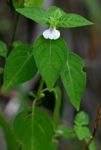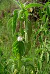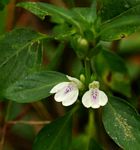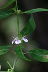 Somewhat scrambling perennial herb. Stems ascending to erect, up to 1 m tall, sometimes more, 6-ridged, more or less densely pubescent, especially below the nodes. Leaves opposite, lanceolate to ovate, hairy. Flowers in clusters in the upper the leaf axils, white with violet markings in the broad, slightly 3-lobed lip. |