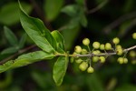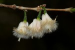 Somewhat scrambling shrub, rarely a small tree. Leaves opposite, variable in shape and size, mostly broadly elliptic to ovate, velvety hairy on the undersurface. Flowers bell-shaped in 1-5 flowered clusters, borne on distinct axillary stalks, appearing before or with the new leaves. Corolla white, often tinged pink with long, fluffy hairs in the throat. Fruit almost round, crowned with the remains of the calyx, hairy black when ripe. |