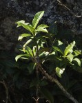 Shrub or small tree. Leaves opposite, oblanceolate, obovate to elliptic, up to 15 cm long, hairless with more or less parallel lateral veins slightly sunken above; domatia absent; margin entire. Flowers in lax, branched axillary inflorescences, small, white to pale creamy-yellow. Fruit round, slightly ribbed, c. 6 mm long, yellow to orange-red when ripe. See P. mahonii for differences. This is one of the main pioneer species in the understorey of secondary montane forest. |