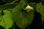 Perennial climber with annual prostrate or scandent stems up to 7 m long, growing from a tuberous rootstock. All parts emit an unpleasant smell when crushed. leave up to c. 19 × 18 cm, broadly ovate to ovate-triangular, mostly unlobed, deeply cordate at the base, punctate and with scabrid hairs above, hairless or crispate-pubescent on the veins beneath; margin from minutely denticulate to strongly sinuate-dentate. Tendrils simple or 2-fid. Flowers unisexual on different plants, axillary, c. 3.5 cm in diameter. Male flowers in 1-8-flowered clusters, opening singly; female flowers solitary. Calyx dark green to black, covered in bristly protuberances. Corolla c. 3.5 cm in diameter, pale orange-yellow, darker near the base, often somewhat zygomorphic. Fruit ovoid or ellipsoid, up to 7.5 × 5 cm, bright orange when ripe, covered in soft spine-like protuberances, dehiscent into three valves, revealing seeds embedded in bright red jelly. |