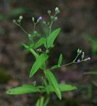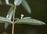 Slender or bushy erect annual herb, up to 80 cm tall, or procumbent perennial with trailing stems to 1.2 m long. Leaves opposite, becoming alternate on the upper stem, sessile, linear-elliptic, narrowly oblong or oblong-lanceolate, up to 8 × 2 cm, sparsely, somewhat bristly hairy above, densely matted with silvery-white appressed T-shaped hairs below; margin entire. Capitula numerous, small, in cymose clusters. Involucral bracts numerous, green, bristle-tipped. Florets discoid, mauve to purple. Pappus 0. |