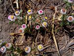 Low annual herb with a long taproot and radiating prostrate branches, up to 25 cm long. Leaves spathulate to oblanceolate, up to c. 2.5 cm long, thinly grey-woolly on both sides. Capitula solitary at the end of branches. Involucral bracts c. 9-seriate, up to 7 mm long, silvery white, turning pink at the centre. Florets yellow, often pink-tipped, turning brown with age.