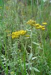 A straggling herb, up to c. 1 m. Leaves oblong-lanceolate, sessile, up to 30 × 7 mm, grey-green and sparsely hairy above, densely greyish-white hairy below, 3-veined from the base. Capitula in fairly dense corymbose heads. Involucral bracts c. 4-seriate, up to 3 mm long, narrowly oblong, straw-coloured. Florets yellow. |