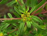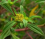 Much-branched erect or procumbent annual herb, usually up to 75 cm tall, rarely taller. Branches opposite, often pinkish-red, mostly hairless. Leaves opposite, yellowish-green, narrowly elliptic to oblanceolate, 1-7.5 cm long, 3-veined from the base, narrowing at the base into a pseudo-petiole; margin more or less finely toothed. Capitula numerous in congested axillary and terminal heads, yellow with very short ray-florets, 0.5-1 mm long. |