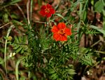 Strongly aromatic, erect annual herb up to 60 cm tall. Leaves elliptic in outline, deeply pinnately lobed; lobes strongly serrate. Capitula with broadly ovate ray florets, emarginate at the apex, yellow to deeply orange-red, with or without darker markings. |
