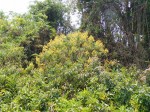 Shrub or small soft-wooded, tree, often much branched, to 7 m. Branchlets with very conspicuous pale leaf scars. Leaves crowded at ends of the branches; petiole to 2 cm; lamina 12-20(-40) × 4-8 cm, simple, oblong-elliptic, glabrous above, sparsely pubescent beneath; margin serrate. Inflorescence a large branched dense terminal panicle. Flowers yellow, unpleasantly scented in c.6-flowered capitula. |