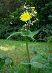 Annual herb, up to 1.2 m tall. Stems with milky latex, hollow below, blue-green, often purplish tinged, hairless but sometimes glandular. Lower leaves more or less oblanceolate in outline, up to 25 cm long, more or less deeply pinnately lobed, with broadly ovate-hastate lobes at the base, spreading but surrounding the stem; margins coarsely toothed with softly spiny teeth. Upper leaves narrower and smaller, sometimes not pinnately lobed but with large spreading auricles at the base. Capitula stalked, many in a large terminal inflorescence. Involucres up to 13 mm long and c. 10 mm wide, broadly cylindrical and white woolly when young, later spreading and more or less hairless, beboming swollen in fruit. Bracts many seriate, narrowly lanceolate, from 3 mm on the outside to 13 mm long on the inside, blue-green, hairless or sometimes with glandular setae. Florets numerous, all strap-shaped, c. 5,5 mm long, yellow. Achenes narrowly obovoid, c. 3 mm long, many-ribbed, light to reddish-brown; pappus with down-like white hairs and barbellate setae. |