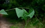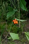 Perennial twining herb. Stems velvety. Leaves variable, broadly elliptic or rhombic, often more or less 3-lobed near the apex, glossy dark green and hairless above, paler and sparsely appressed hairy below; petiole up to 1 cm long. Flowers in axillary spikes, small, unisexual. Male flowers numerous in rather loose spikes up to 9 cm long. Female spikes shorter with fewer flowers on a somewhat swollen rhachis and a peduncle up to 2.5 cm long. Fruits in clusters of 2-5, bright orange when ripe. |