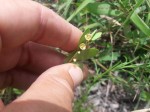 An erect perennial herb or subshrub up to 90 cm tall, dioecious or occasionally monoecious; stems several from a woody rootsock, monomorphic, simple or branched , glabrous or minutely puberulous, reddish-brown; scale leaves 0; foliage leaves distichous or ± so, often folded up together, petiole 1-2 mm long, leaf blades 0.5-3.5 x 0.3-2.8 cm, suborbicular to elliptic-oblong, rounded or emarginated, sometimes mucronate, rounded, truncate or shallowly cordate at base, glabrous on both surfaces, deep blue-green above, paler and glaucous below, lateral nerves in 6-18 pairs, scarcely or slightly prominent above but more so beneath; male flowers in 2 or more flowered axillary cymules, female flowers solitary or rarely in pairs per axil, rarely accompanied by 1-2 male flowers; in male and female flowers sepals 6, white to yellowish-green or reddish-tinged; fruit 4 x 7-8 mm, 3-lobed, shallowly rugulose-venose to ± smooth, pale green and often reddish-tinged; seeds 3.2-3.4 x 2.6-2.8 x 2.4-2.5 mm, somewhat asymmetrically rounded-segmentiform, pale yellowish-brown with c. 35 longitudinal rows of minute glistening darker reddish-brown tubercles on the dorsal facet and c. 30 irregular and rather broken arcs of such tubercles on each ventral facet. |