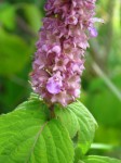 Woody perennial herb or shrub up to 3 m tall, smelling of peppermint when crushed. Stems with hairs mostly appressed and directed upwards. Leaves petiolate: lamina ovate-elliptic to broadly elliptic, pubescent; apex acuminate. Inflorescence terminal, dense, 3-14 cm long; bracts 6-12 mm long, numerous, ovate to oblate with apex acuminate to long-caudate. Corolla pink with a white centre, 9-10 mm long; upper lip 2-2.5mm long; lower lip 4.5-6 mm long. |
