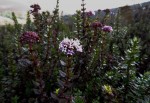 Small shrub, less than 2 m high. Leaves narrowly elliptic to lanceolate, 8–25 mm long, discolourous, green above (blackish-green when dry), whitish or silvery beneath, hairless or with a few hairs on the margins and main vein beneath; , margins revolute; petiole short, scarcely 1 mm. long; stipule sheath hairy, 1–3 mm long, with 3–7 fimbriae 1–4 mm long. Inflorescences 1.5–2.5 cm wide, less than 30-flowered. Corolla white, pink or pale lilac; tube 1.8–4 mm long, hairless or hairy outside; lobes oblong-ovate, 1.5–3 mm long. Capsule 1–1.2 mm tall excluding the 1–1.6 mm long beak. |