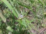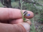 Shrublet up to 40 cm tall of ericoid appearance with glabrous, slightly winged stems; leaves8-15 x 0.5-2 mm, linear to very narrowly oblanceolate, glabrous, apex often hooked or barbed, margin slightly incurved; inflorescence in dense subcapitate lateral racemes c. 2 cm in diameter; flowers greenish or yellowish with blue crest; posterior sepal 3-3.5 mm long; wing sepals 7-10 x 5-5.5 mm, obliquely ovate-elliptic and ciliolate on the margins; anterior sepals 2.5-3 mm long, connate (fused); upper petals 4 x 2.5 mm, obovate-cuneate, contorted; carina 6 x 2 mm, crest 2-2.5 mm long; capsule 4.5 x 2.5 mm, oblong-elliptic, glabrous, with narrowly winged margins; seeds 2.8-3 x 1.2-1.7 mm, ellipsoid with white silky hairs; caruncle 1 mm long with small appendages. |