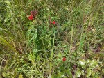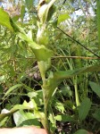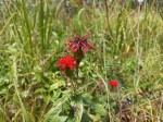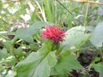 Slender erect suffrutex growing from a woody rootstock; stems annual, 1-several, 20-90 cm. tall, unbranched or occasionally branching above, leafy to near apex, covered in soft white fine hairs; leaves ±discolorous, sheathing stem at the base, 4.5-20 x 1-4 cm., narrowly oblong-lanceolate to narrowly-elliptic, tapering acute at apex, cuneate to rounded at base narrowing to a winged petiole-like midrib before grading into cylindrical or narrowly funnel-like, partially or deeply cleft sheath 5-20 mm. long, margins finely sharply irregularly serrate with serrations becoming linear teeth c. 5 mm. long towards base, upper surface green appressed hairy to glabrescent, lower surface whitish hairy; capitula solitary and terminal or 2-4 on long stout stalks; involucres mostly 22-30 x 18-28 mm. spreading to c. 45 mm. wide, obconic-campanulate; phyllaries numerous, appressed sheathing, sparsely puberulous to glabrescent outside, margins very narrowly hyaline c. 4 mm. long and narrowly ovate, increasing to c. 23 mm. long and lorate-lanceolate inside; middle phyllaries to 6 mm. wide, obtuse at apex; inner phyllaries narrower; florets very numerous; corollas bright to deep red, up to 25 mm. long with a long slender tube abruptly dilated into a short cylindric deeply narrowly-lobed limb which exceeds the pappus and involucre, glabrous; achenes 10-15 mm. long, narrowly cylindric, obscurely narrowly many-ribbed, densely hispid; pappus of copious barbellate setae 10-17 mm. long. |