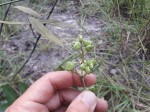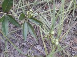 Suffrutex with annual shoots up to 2 m tall arising from a woody rootstock; stems and branches red-brown to dark-brown, cylindric and glabrous on the lower parts, subangular and ± shortly puberulous or glabrescent towards the apex, rather densely leafy; leaves mostly subverticillate, petiole 0.2-0.5 cm, gooved on upper face and convex beneath, puberulous or minutely appressed-hairy to glabrescent, lamina discolorous, cinnamon-coloured or greenish-brown to dark brown , shining and glabrous above, ± whitish beneath (densely covered with minute and appressed hairs), (3)5-16 x (0.3)0.8-2 cm, linear to oblong-lanceolate, frequently infolded at the midrib, attenuate, very acute and mucronate at the apex, with thickened pale undulate or flat margins, subcoriaceous to coriaceous, midrib impressed above, very prominent and ± sparesly appressed-hairy beneath, lateral nerves 1-1.5 mm apart, slightly prominent above and a little more so below, usually not forked until the margin, tertiary nerves and veins not visible; inflorescences terminal and subverticillate and axillary, the latter generally shorter than the leaves, up to 3 cm long on peduncles 0.5-9 cm long; flowers shortly pedicellate; calyx segments 1.6-2.2 x 0.7-1.3 mm, oblong-ovate to lanceolate, acute, externally appressed-hairy; petals whitish, c. 3 x 1 mm, oblong-lanceolate, externally appressed-hairy with a triangular inflexed apex; drupe black, shining, 6 x 7 mm, broadly obovate, compressed, a little asymmentric, retuse or emarginated, wrinkled. |