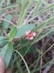 Erect annual herb up to 1.2 m tall arising from a sometimes woody taproot; stems angular, greenish-yellow to reddish-brown, ± densely appressed strigose with short ± equally biramous pale hairs, reddish pearl bodies restricted to leaf axils; stipules 4-7 x 0.5-1.5 mm; leaves simple, 9-80 x 1-9 mm, linear-lanceolate, acute, sparsely bristly hairy above, densely bristly hairy below, petiole 1-2 mm; inflorescence lax to densely subcapitate panicles at ends of main branches and axils of reduced leaves, panicles sometimes more openly branched and appearing raceme-like or compound and branching with two or more capitula, peduncle 3-25 mm; calyx 3-5 mm long, lobes linear-lanceolate, attenuate 4-10 times as long as 0.5-1 mm long tube; corolla 5-6 mm long, orange to orange-pink; back of standard spreading hispid, wings glabrous, keel densely reddish-brown hairy beneath; pods 3-5 x c.2 mm, densely white, yellowish or reddish-brown hairy, 2-seeded. |