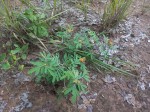 Herbaceous annual to woody perennial shrub, erect or prostrate, somewhat bushy, 30–100 cm high. Stems densely pubescent to tomentose with whitish to rusty-brown upwardly appressed to deflexed hairs. Leaves pinnate with (2)4–8 pairs of leaflets; petiole 0.3–1(1.5) cm long, petiole and rachis together (1)2–5(7) cm long, pubescent to tomentose like the stem; leaflets 1–3(3.7) × (0.3)0.4–0.7(0.9) cm, oblanceolate to narrowly obtriangular or narrowly elliptic, cuneate to rounded at the base, rounded to emarginate at the apex; upper surface glabrous or rarely the younger leaves appressed-pubescent and glabrescent, the lower surface densely appressed-pubescent with silvery hairs, silky; stipules 5–9(14) × 0.5–1 mm, linear, persistent. Flowers in dense heads 1–3(4) cm long, terminal on main or lateral branches and surrounded or exceeded by the upper leaves, and usually also some flowers in the axils of the 1–5 uppermost leaves; bracts 3–9 × 0.5–1 mm, linear; pedicels 2–3(5 in fruit) mm long. Calyx (5)6–9 mm long, densely pubescent with appressed to spreading hairs, grey, or brown on the teeth; lateral teeth equalling or somewhat exceeding the tube, upper teeth joined for less than ⅓ their length or ± free to the base. Petals 12–18 mm long, yellow or orange to pinkish. Ovary pubescent; style glabrous, with pencillate tip. Pods 30–44 × 3.5–5 mm, lanate-tomentose with grey or brown hairs, those at the margin sometimes conspicuously darker than those on the surfaces. Seeds 6–9, c.2.8 × 2 × 1 mm, blackish-brown, ± ovoid, with a small rim aril towards the narrower end. |