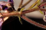 Single-leaved monocarpic herb. Leaf broadly ovate, up to 25 × 28 cm, cordate at the base, densely but shortly hairy above, densely hairy on the veins beneath, more sparingly so in between; margin shallowly crenate. Inflorescences 1–5, many-flowered, with several flowers open simultaneously on each. Peduncles 10–20 cm long, densely hairy; hairs especially towards top often glandular. Pedicels densely glandular-hairy, 30–45 mm long. Bracts usually linear, c. 8 mm long, densely hairy. Calyx segments linear, 5–10 mm long, densely hairy, often glandular. Corolla 50–60 mm long; tube 30–40 mm long, almost straight or slightly deflexed and widened above the middle, with short spreading, often glandular hairs outside; upper lip of 2 rounded lobes 8–13 mm long, lower lip 3-lobed, 17 mm long. Capsule usually c. 80 mm long. |