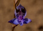 Terrestrial herb 20–40 cm tall. Basal leaves c. 6, produced after flowering, c. 30 cm long and 1–2 mm wide, semi-erect. Leaves along the stem few, completely sheathing, 2–3 cm long. Inflorescence laxly 2–10-flowered, 4–13 cm long. Bracts dry, ovate, c. 1 cm long. Flowers white to blue or dark-mauve. Dorsal sepal hooded erect, 10–12 mm tall, c. 8 mm wide, with an erect to reflexed apex. Spur 3–5 mm long, cylindrical or laterally flattened, horizontal or gradually ascending. Lateral sepals narrowly ovate to lanceolate, 10–12 mm long. Lip narrowly ovate to lanceolate, 11–13 mm long, curved upwards, margins almost entire to shallowly fimbriate on the sides.