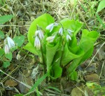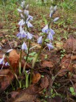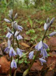 Leaf held erect, lamina broadly ovate, the base cordate. The inflorescence a raceme with up to 17 flowers, the buds erect, the flowers nodding. Tepals 6, pale blue; anthers yellow. |